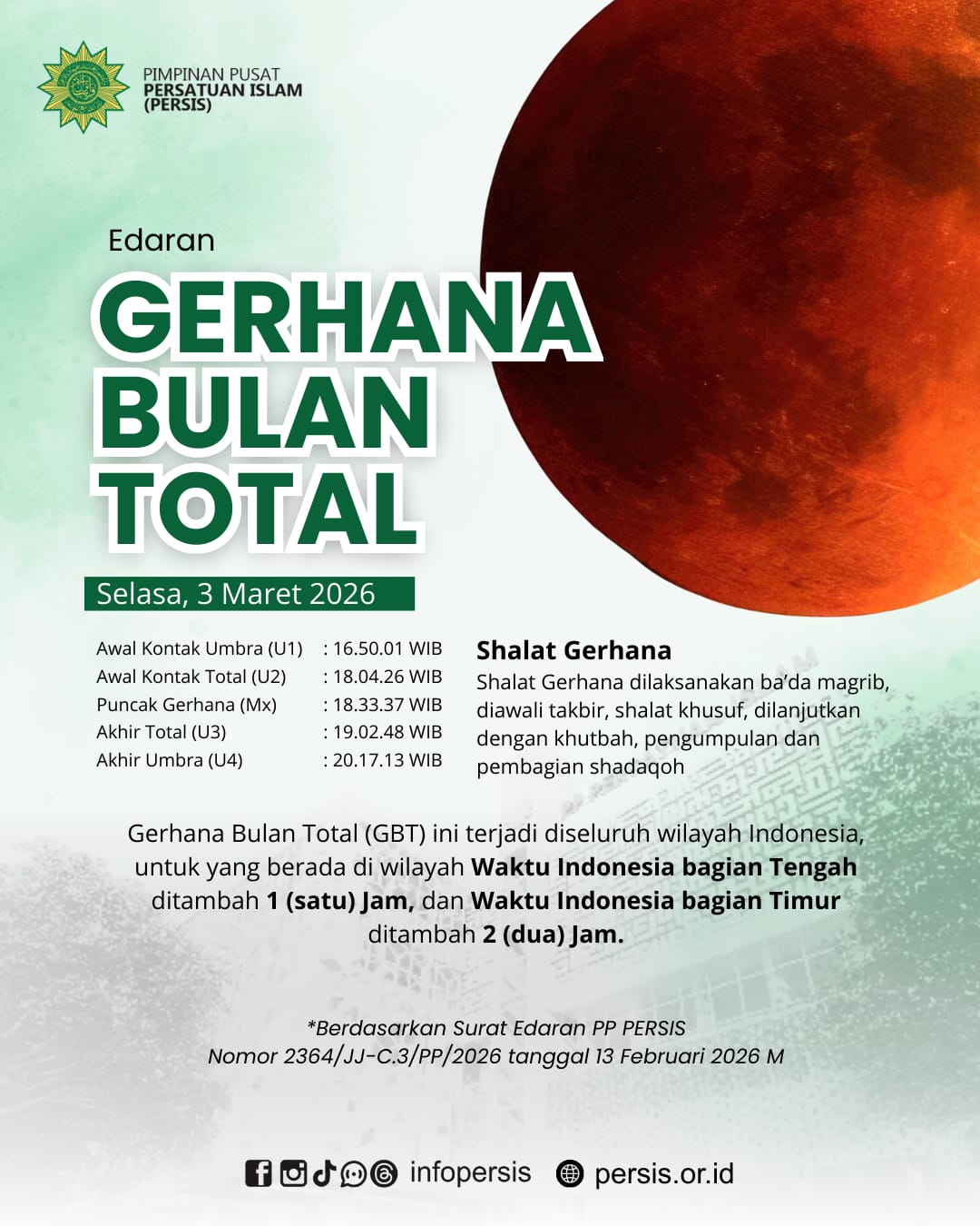 PP PERSIS Himbau Shalat Gerhana Bulan Total pada 3 Maret 2026